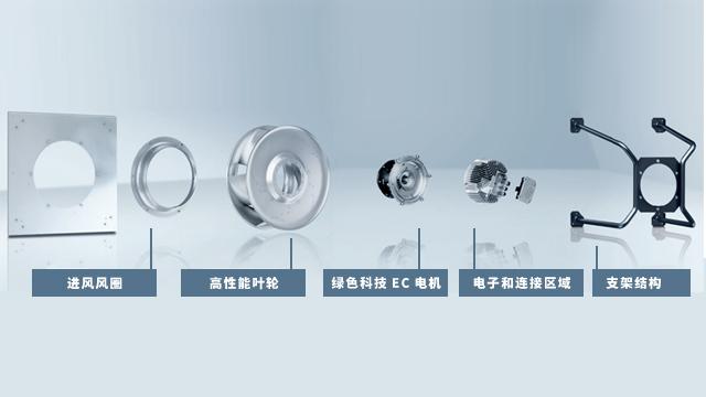 3.綠色科技EC電機:極其緊湊,葉輪直接安裝在電機轉(zhuǎn)子上;效率高,銅鐵損耗低,同步運行,無轉(zhuǎn)差損耗,采用永磁磁體,轉(zhuǎn)子內(nèi)無磁滯損耗;運行非常經(jīng)濟(jì)實惠,優(yōu)化換向,可實現(xiàn)高達(dá)1:10的部分負(fù)荷運行,同時仍保持高效率;噪聲低,換向和定子設(shè)計使得勵磁系統(tǒng)的磁化噪聲非常低,高循環(huán)頻率,幾乎聽不到任何噪聲;使用壽命長,免維護(hù)軸承,無刷換向;運行可靠,絕緣軸承系統(tǒng),避免產(chǎn)生軸承電流